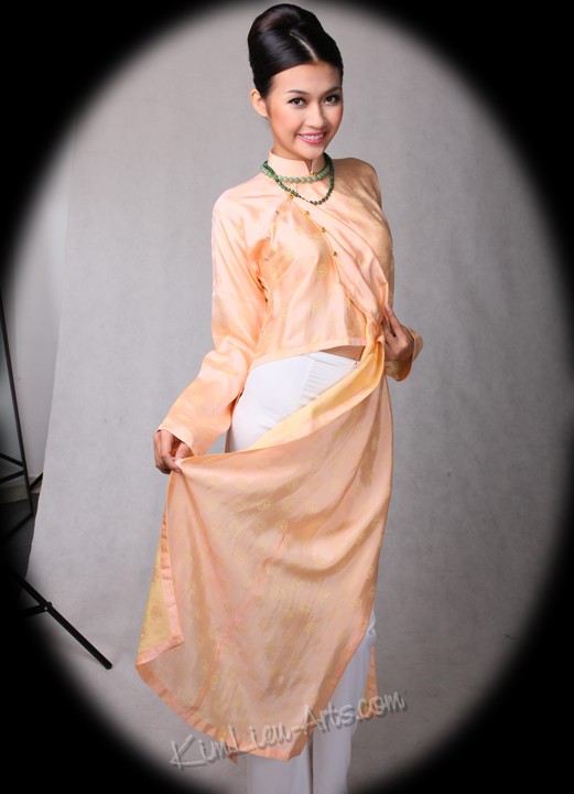 "Ao The" – In the 1940s city women wore modern "ao dai" made by special light weight materials with velvet designs with colored linings. This outfit is referred to as "minh kho hoa uot".